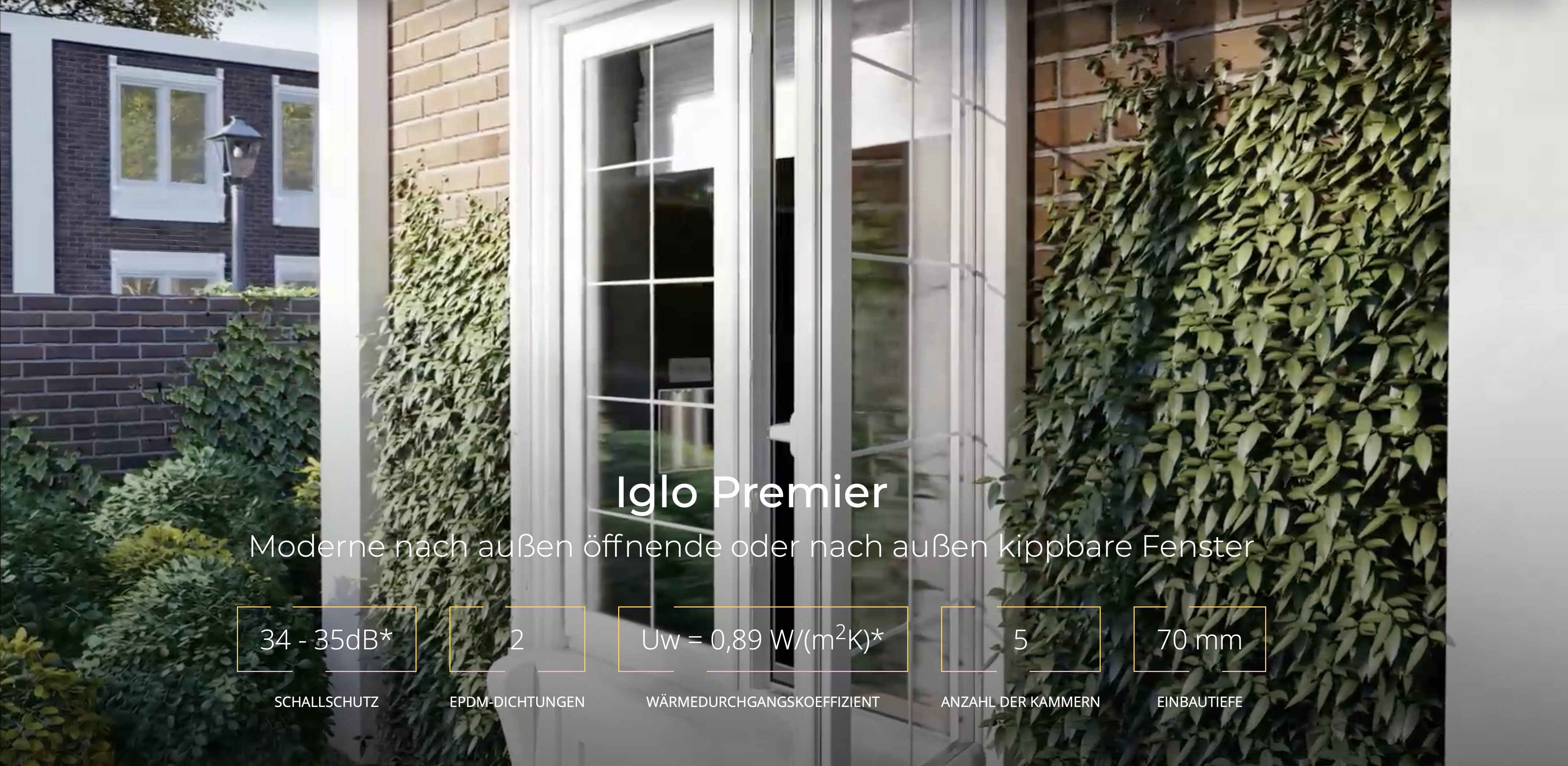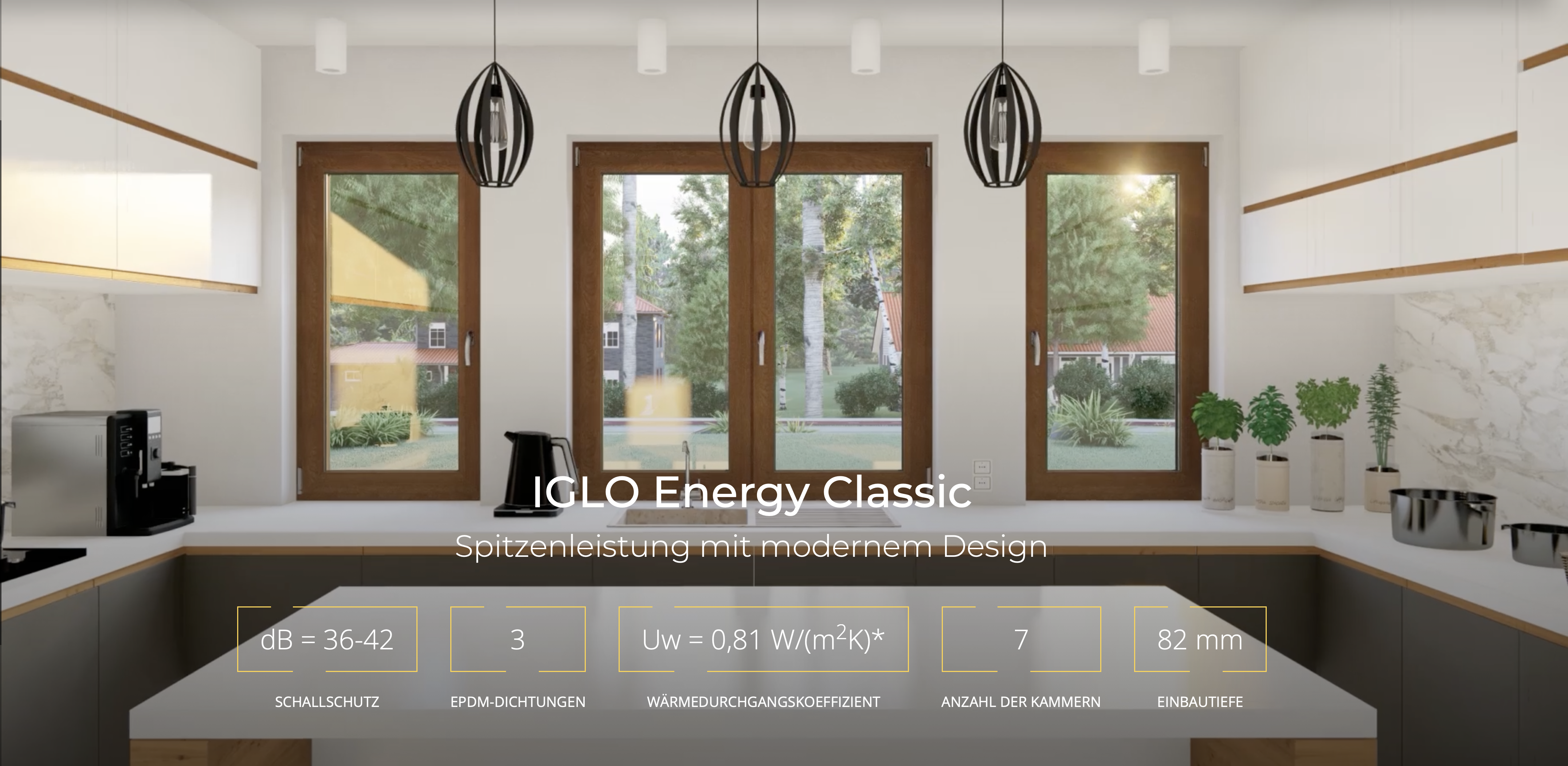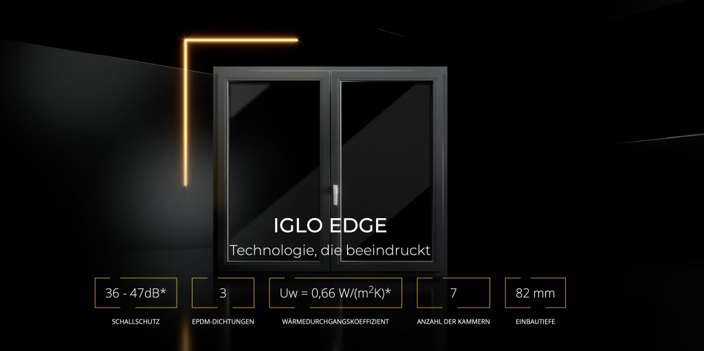 Unser neues, technologisch fortschrittlichstes Fenster zeichnet sich durch seinen hervorragenden Wärmedämmwert von Uw = 0,66 W/(m2K)* und die moderne, eckige Profilform aus. Verantwortlich für die sehr guten Wärmedämmparameter sind u.a. die 7-Kammer-Profilkonstruktion und die 3 EPDM-Dichtungen inklusive Mitteldichtung.