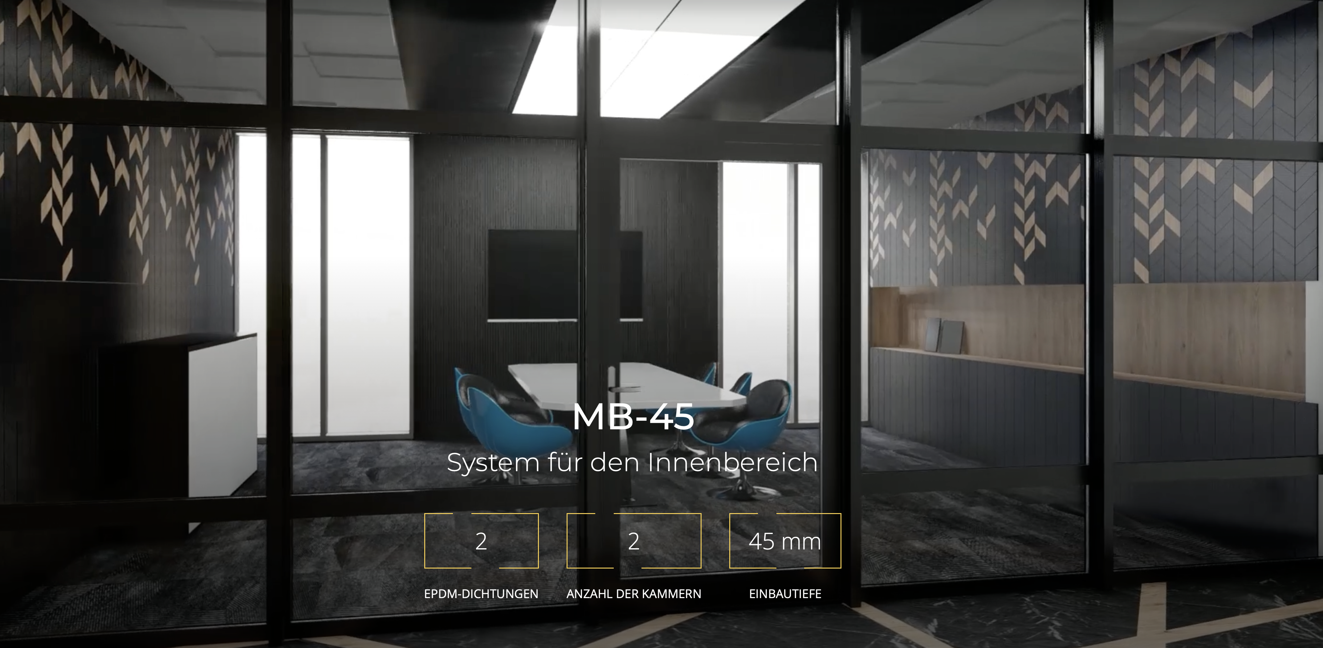 Die MB-45 Aluminiumfenster sind für die Montage im Innenbereich bestimmt.