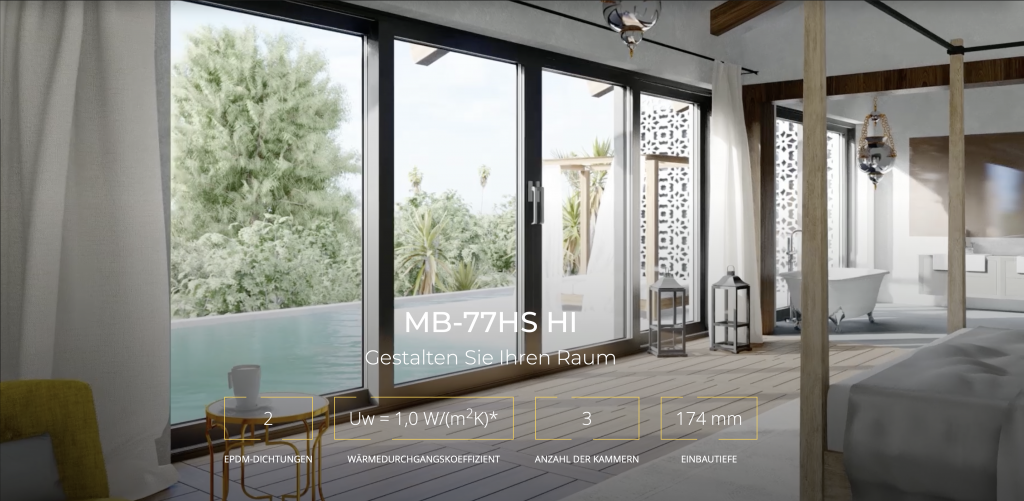 Dieses Terrassensystem wurde durch die Kombination der hervorragenden Wärmedämmungseigenschaften von PVC mit den besten Eigenschaften von Aluminium entwickelt. Eine breite Farbpalette ermöglicht die Schaffung eines individuellen Stils für jeden Innenraum oder jede Gebäudefassade.