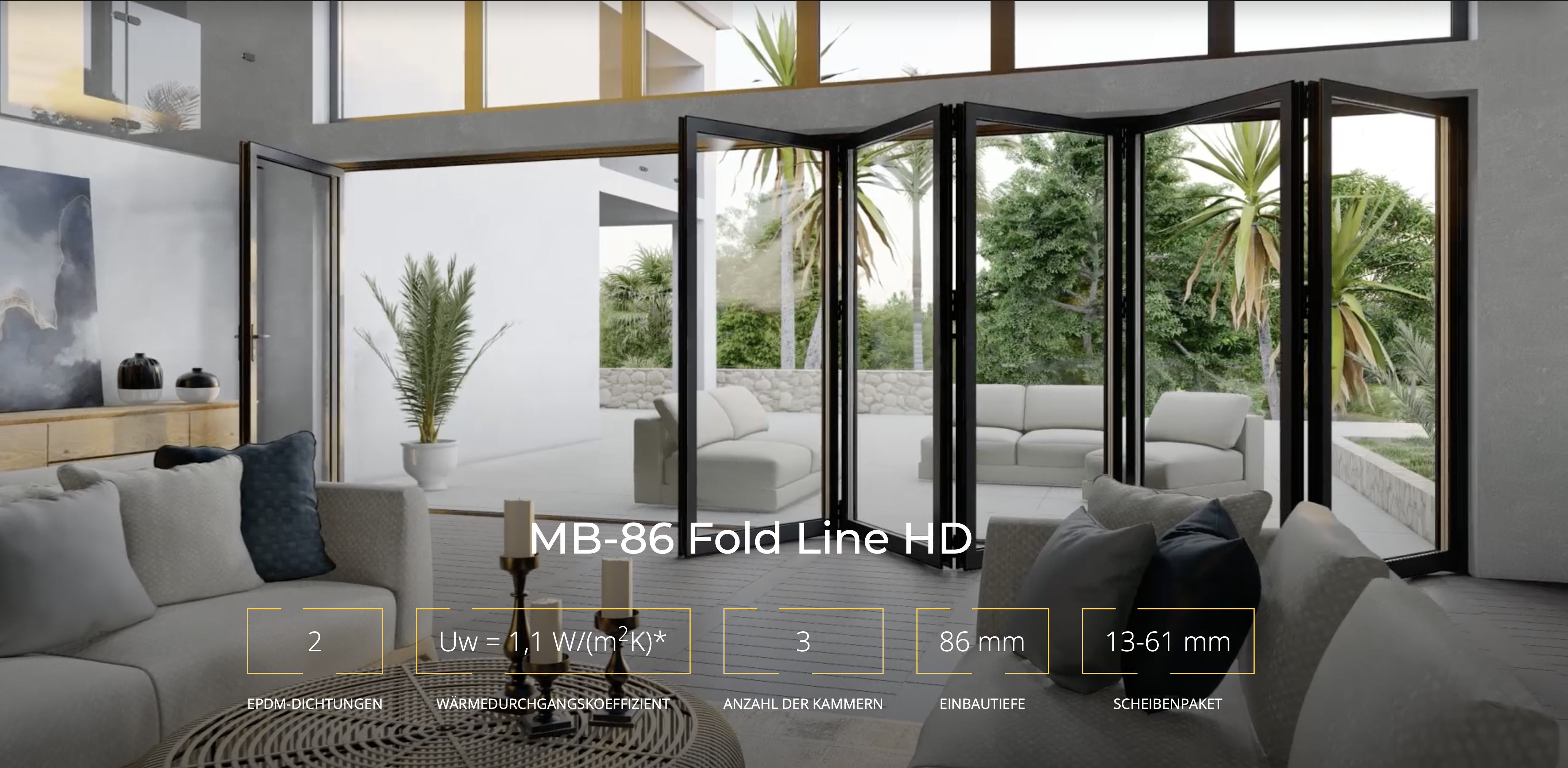 Das einzigartige Faltsystem ist ideal für Räume, die eine große Verglasung benötigen. Dank der Verwendung modernster technologischer Lösungen zeichnet es sich nicht nur durch eine sehr gute Wärmedämmung aus, sondern auch durch eine äußerst robuste Konstruktion.
